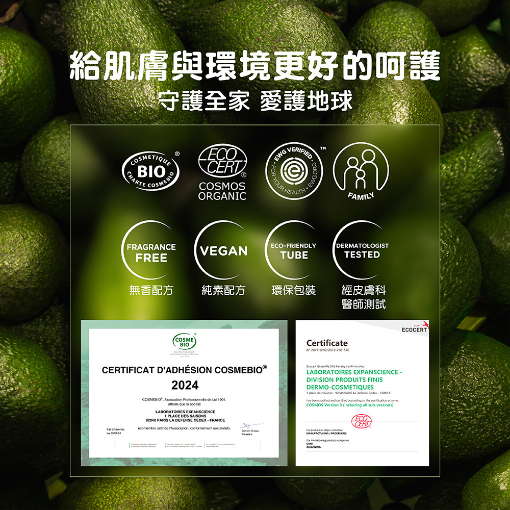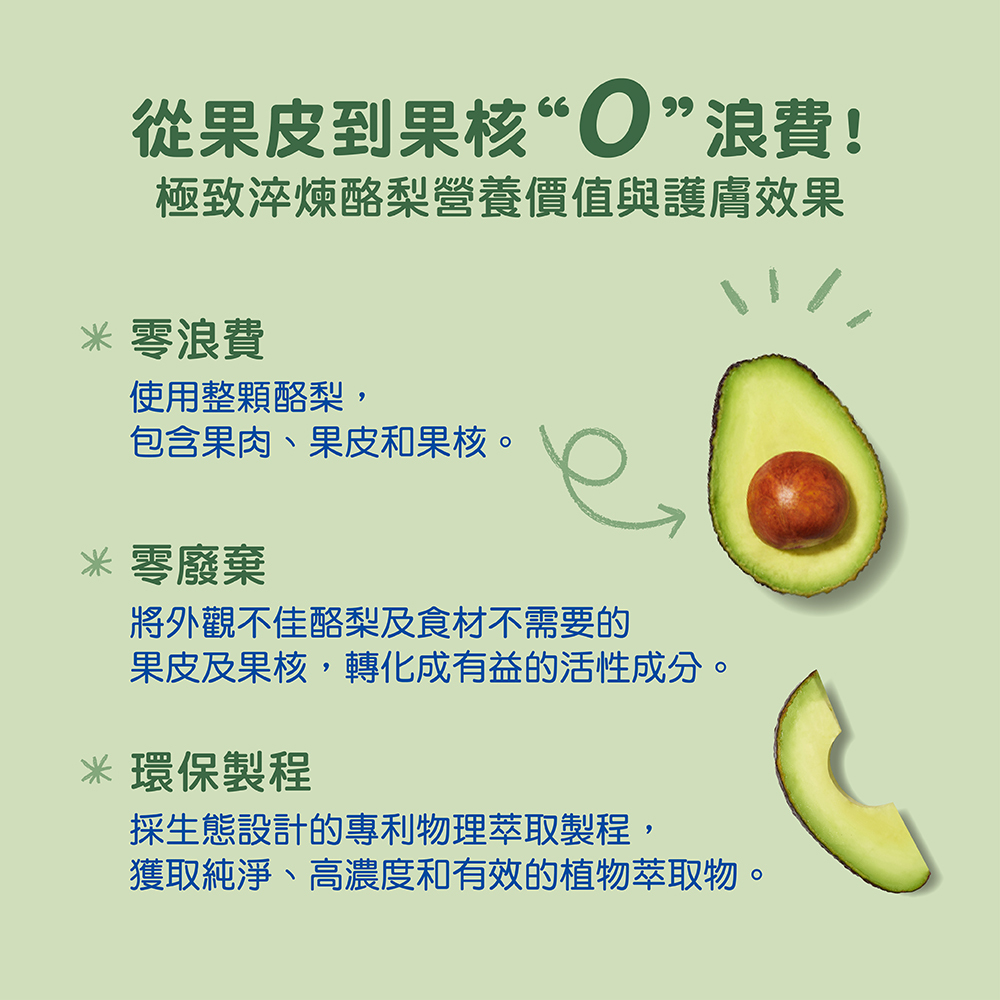 富含3重酪梨活萃精華(初榨酪梨油、酪梨糖、酪梨多酚),可滋養柔嫩乾燥肌、長效保濕舒緩,同時啟動防禦作用,維持肌膚健康。