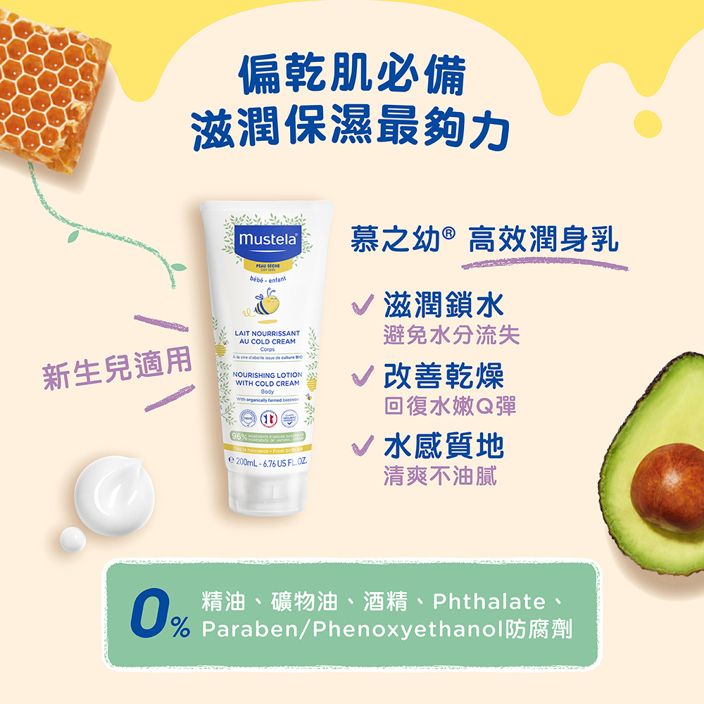 複合性滋養,有助肌膚重建親水性皮脂膜