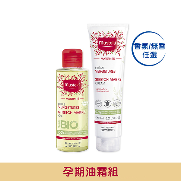 孕期(無紋路)👉孕膚霜+孕膚油-懷孕第一天開始擦,以油1:霜3的黃金比例混合後塗抹在腹部,臀部,大腿和胸部等部位,幫助肌膚潤澤保濕、維持彈性。