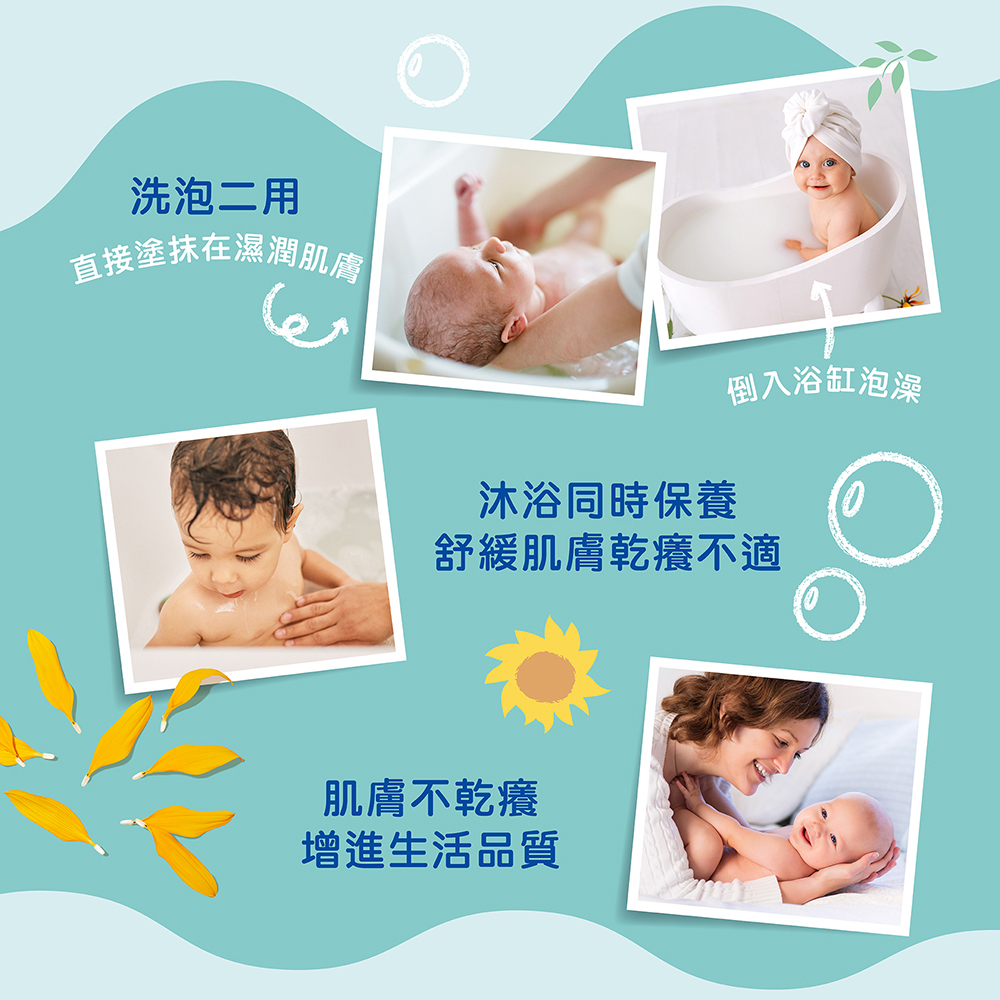 超濃縮葵花子油+酪梨複合活源醣,兩大專利成份,泡澡肌膚滋潤強化打底