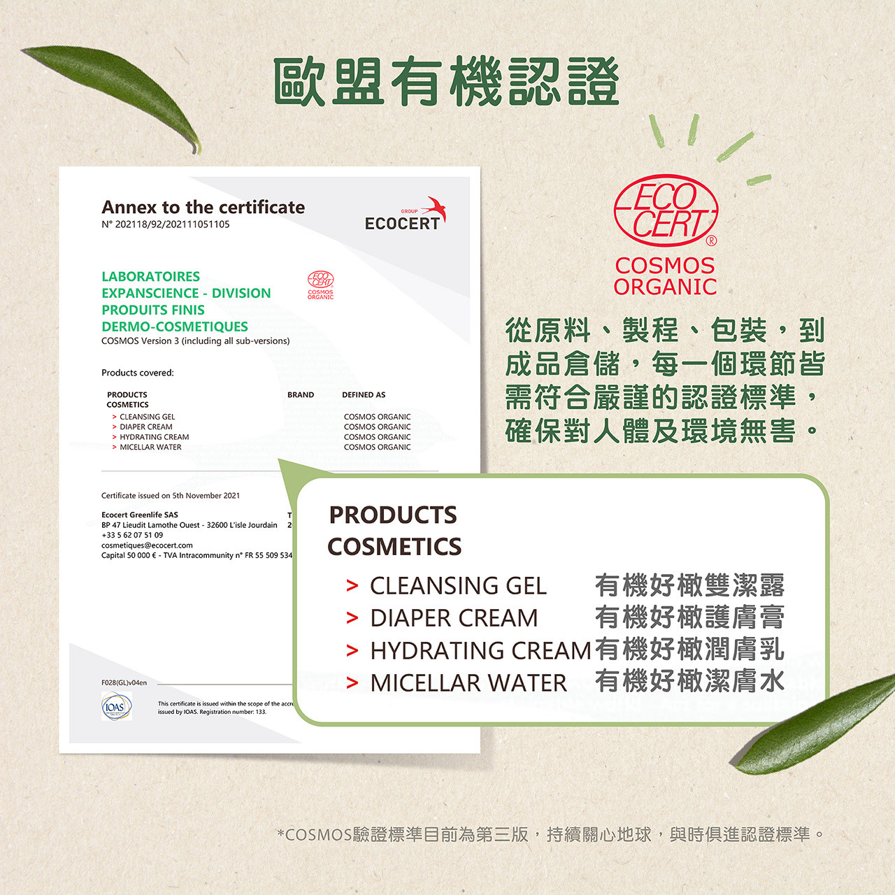 雙重有機認證:榮獲法國BIO天然有機認證、歐盟ECOCERT有機認證