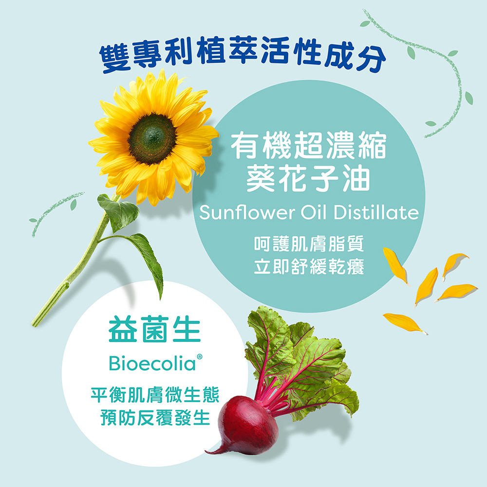 針對極度乾燥/乾癢膚質,添加兩大專利成份